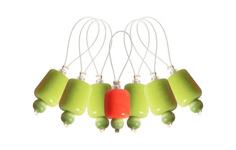 Маркери петель ZOONI KnitPro, серія Holly. У комплекті 7 маркерів, де 1 використовується для відмітки початку петлі (цей маркер відмінний за кольором). Маркери підходять для розмітки раппорту малюнка, стежка та рядка. Легко можна переміщувати по спиці по ходу роботи. Також використовується для відміток помилок у в'язанні, які необхідно виправити.