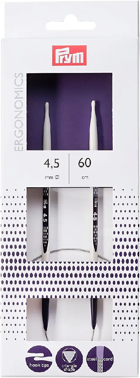 Інноваційні кругові спиці prym.ergonomics роблять процес в'язання простішим, приємнішим і красивішим. Вони виготовлені з високоякісного пластику "High-Performance" і легко гнуться, тобто. при в'язанні вони повторюють рухи рук. Матеріал також гарантує безшумне в'язання, при якому не виникає звуків, що стукають. Завдяки краплеподібному вістря спиці prym.ergonomics добре підходять також і для новачків, адже нитка спрямовується явно простіше і пряжа не так швидко зісковзує з вістря. Завдяки формі спиць, що змінюється, - кругла для утворення петлі, що переходить в трикутний перетин - петлі легко ковзають по тілу спицю. Стабільна, дуже тонка сталева волосінь кругових спиць обгорнута високоякісним пластиком. Тут не виникає спірального ефекту, волосінь не плутається: тому руки можуть просто робити те, що хочуть, а саме – в'язати.