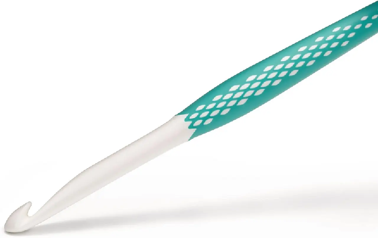 Вона складається з ковзаючого пластику і надає гачку необхідну міцність захоплення. Користуючись колірним кодуванням на верхньому кінці ручки, легко знайти в кошику для рукоділля гачок потрібного розміру.