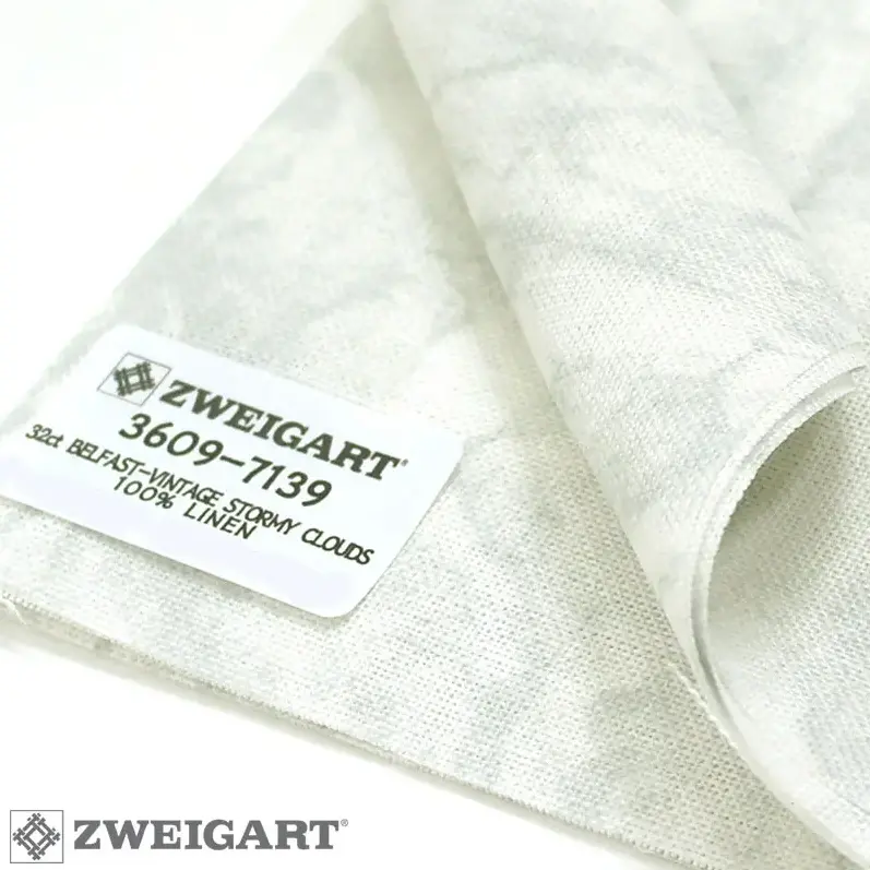 Тканина для вишивання Belfast від німецького виробника Zweigart має рівномірне плетіння ниток і злегка нерівномірну структуру волокон.