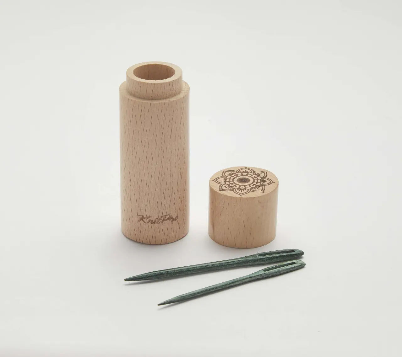 Гладко оброблені дерев'яні голки дуже міцні і тому підходять для багатьох різних робіт з шиття та штопки. Кожен набір складається із двох маленьких та двох великих спиць типового бірюзового кольору, характерного для колекції KnitPro Mindful. Набір голок поставляється у стильному дерев'яному футлярі з кришкою, на якій надруковано мандали символ. Поставляється за 1 комплект із 4 штопальних голок.