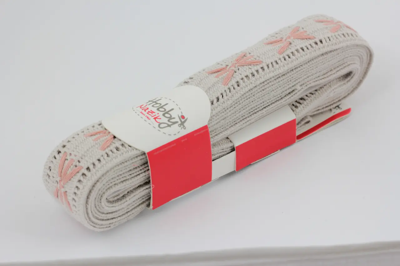5022/L4 Кружево 40 мм 100%% хлопок Турция (лен с розовым). Каталог товарів. Вишивання/Шиття. Мереживо та стрічки