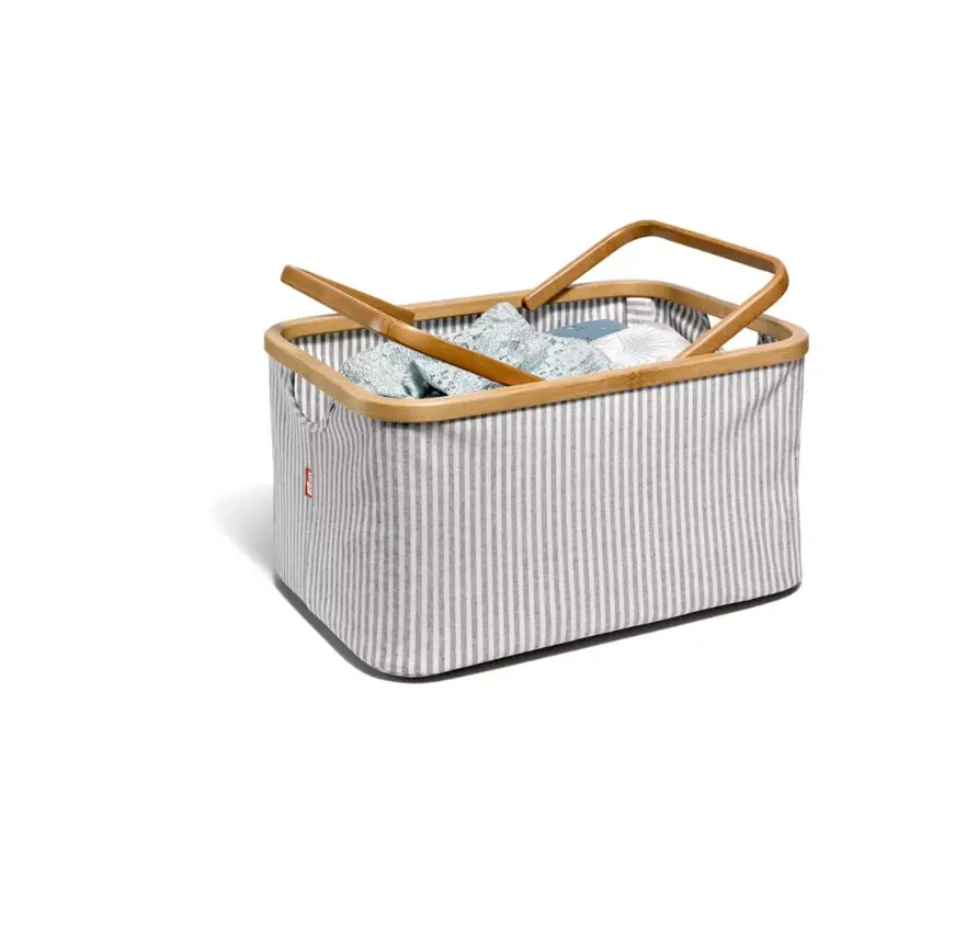 Складна корзина Fold & Store “Canvas & Bamboo” чудово підходить для зберігання та транспортування товарів для рукоділля, пряжі, матеріалів, інструментів або домашніх дрібниць. Стильний смугастий дизайн легко вписується в будь-який інтер’єр, а легкі бамбукові ручки додають виробу природного та акуратного вигляду.