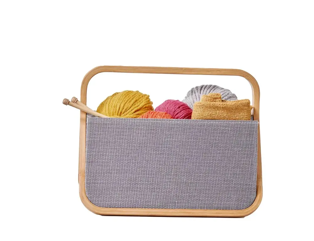Складна корзина Canvas & Bamboo підходить для зберігання пряжі, в’язаних виробів, матеріалів для рукоділля, журналів або газет. Завдяки посиленим боковим стінкам і дну корзина добре тримає форму у відкритому вигляді. При необхідності легко складається до плоского стану — зручно для компактного зберігання.