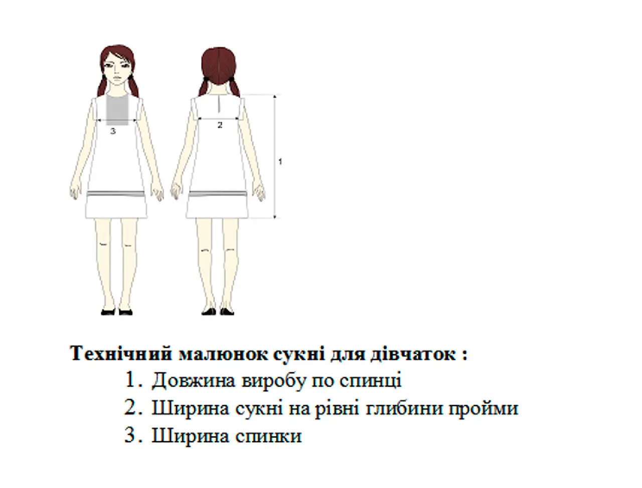 Готове плаття для дівчаток зі вставками під вишивку нитками та бісером. Вставки розташовані так, як показано на малюнку. Сукня без рукавів вільного крою.