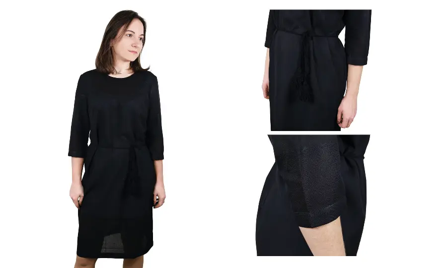 Жіноче плаття з поясом під бісер, стрази та вишивку хрестиком, чорного кольору.