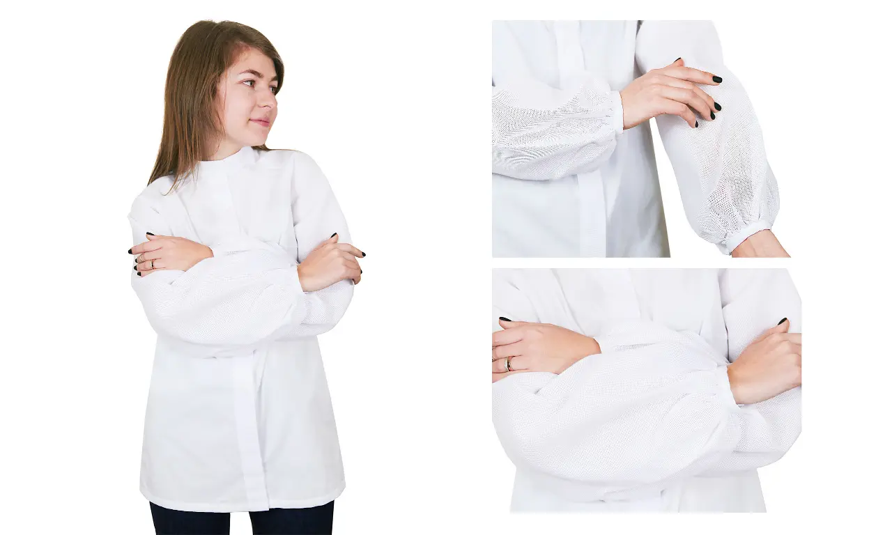 Готова жіноча біла сорочка із вставками під вишивку нитками. Вставки розташовані так, як показано на малюнку. Рубашка з довгим рукавом та коміром стійка.