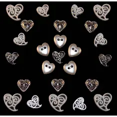 3131 Декоративні ґудзики. Серця (білий/срібло)